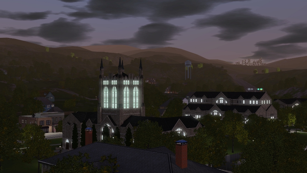 Whoa en oo koskaa tajunnu et tuolla yo-maailman horisontis näkyy jonku kaupungin pilvenpiirtäjät! Onpas kiva yksityiskohta, tuntuu vähä vähemmän siltä et kampusalue on isketty randomisti keskelle mettää.