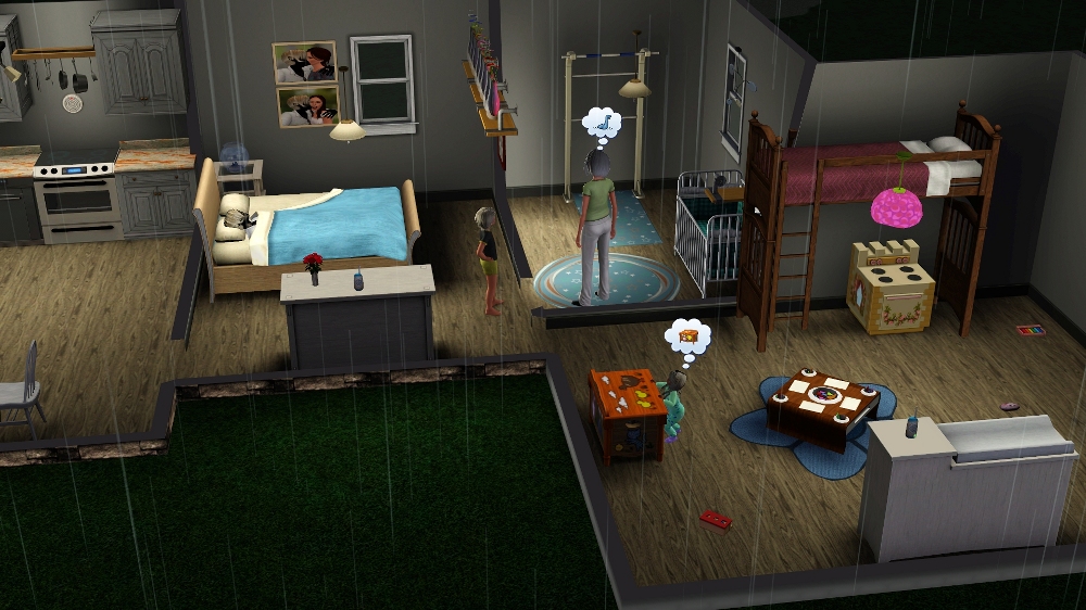 Ja sit tämäkii päätti polkasta pihalle. Se yritti mennä käyttämään piirtämis-/palikkapöytää, mut jostain syystä simsin reititys toimi taas mainiosti.